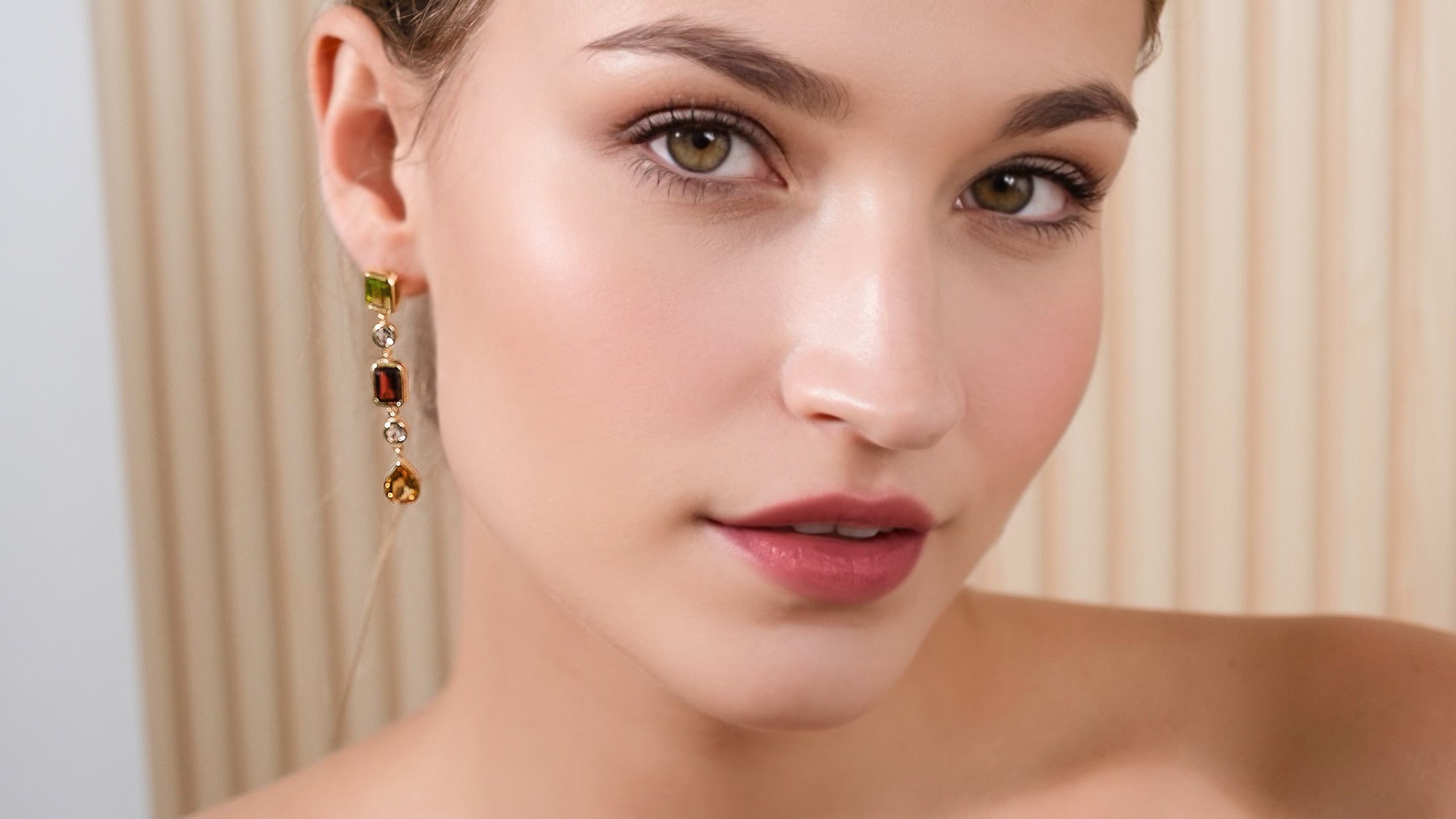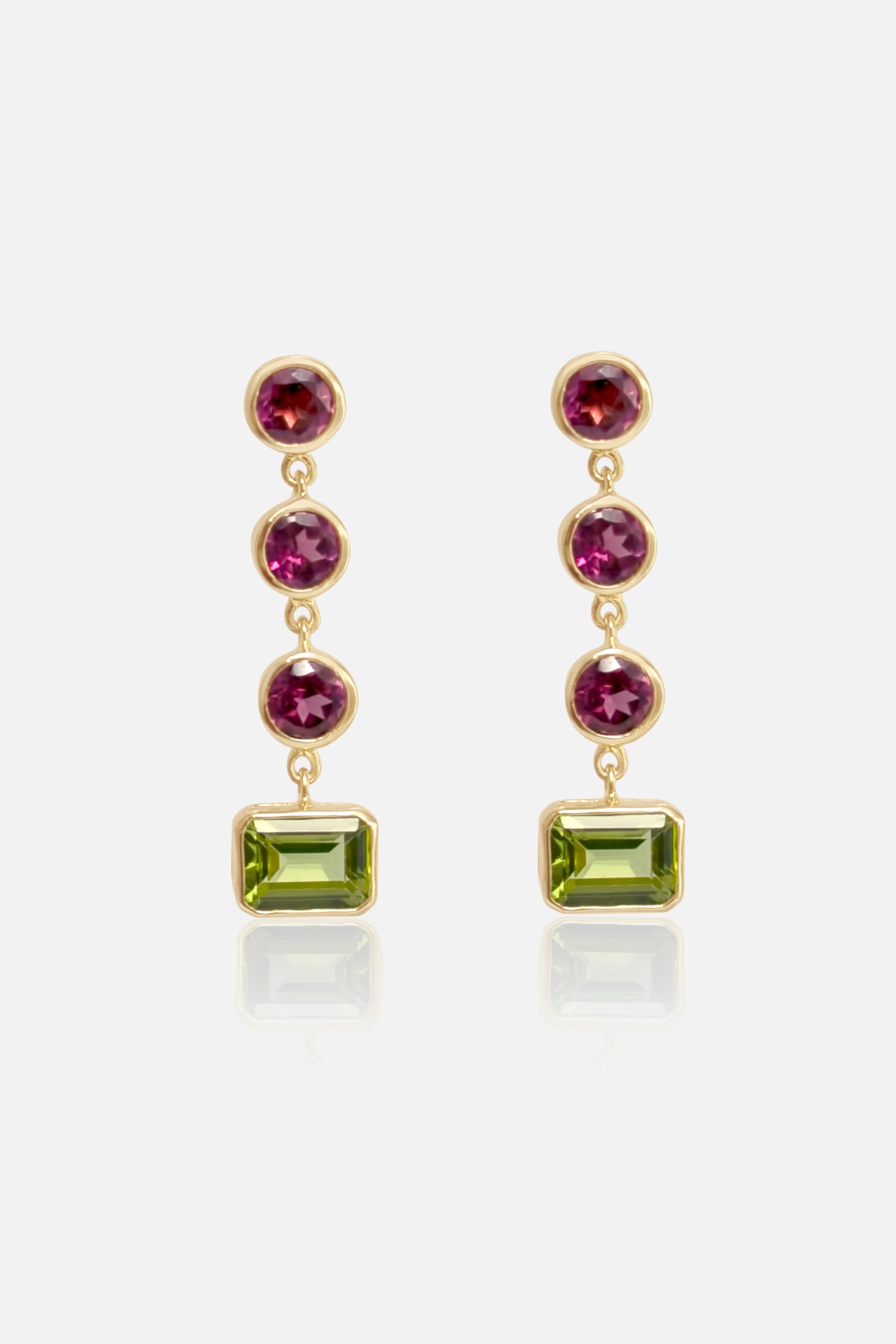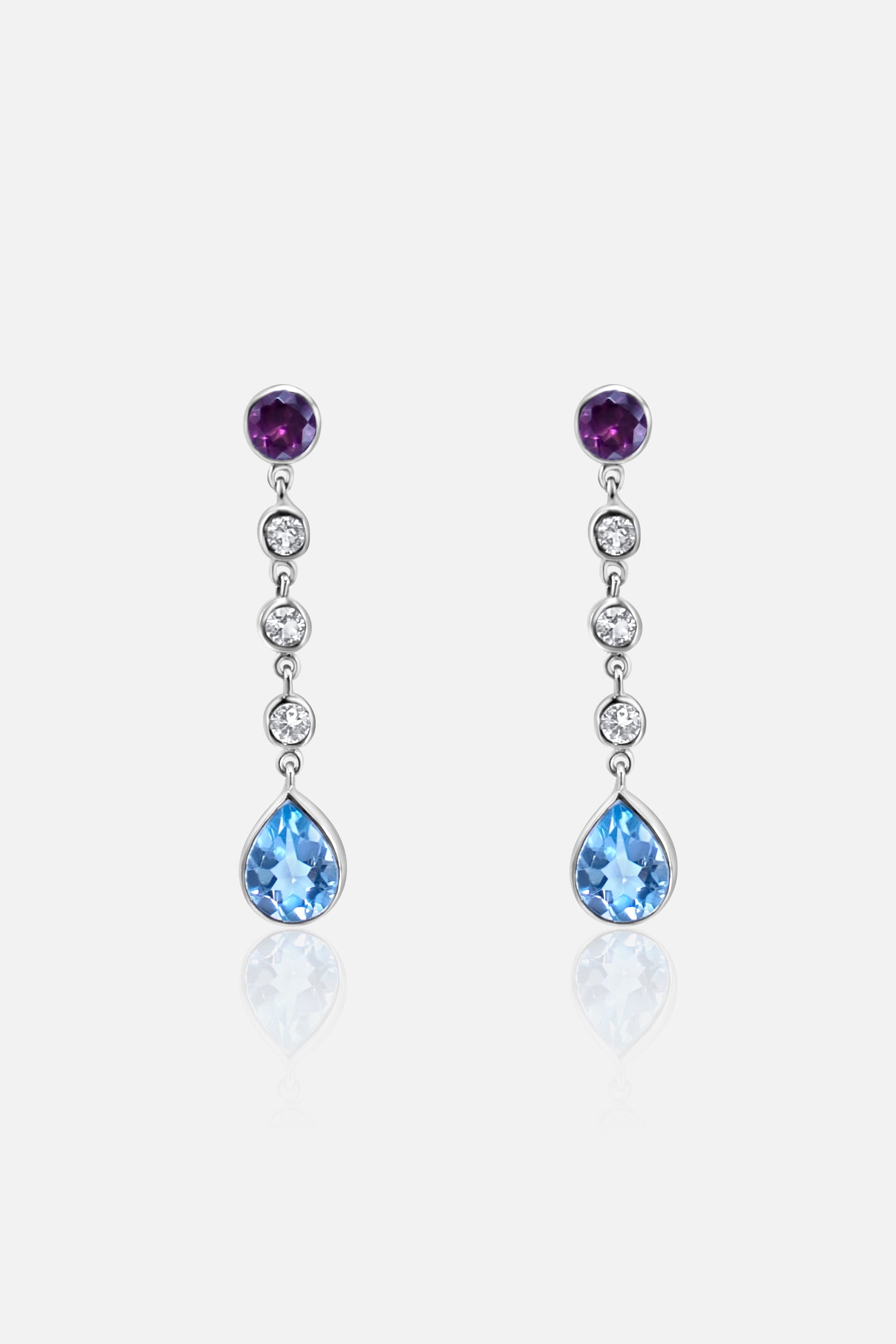 These dazzling earrings feature five sparkling gemstones that make an eye-catching statement. The bold colour combinations and drop design add a touch of glamour and personality to any outfit.